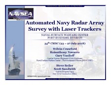The AN/SPY-1 is a passive electronic scanning 3-D radar system and a key component of the integrated naval weapon system known as the ACS. CGs and DDGs are naval warships equipped with the ACS and subsequently the AN/SPY-1 radar system. AN/SPY-1 system uses four large octagonal antennas. These connected antennas each provide 90 degrees of coverage and simultaneous tracking capability of 200 targets. To verify physical alignment, each antenna is surveyed independently using key fiducial points on each array against the ship’s common coordinate system and leveling plane. This produces the array’s definite orientation relative to the ship‘s references. The survey process is designed to measure element alignment errors which are afterward corrected maximizing opportunities for target detection-control-engagement.